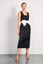 Элегантное женское платье, выполнено в виде имитации костюма из двух видов ткани.