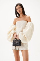 Платье А-силуэта, отрезное по линии талии с рюшей. Втачной длинный рукав со сборкой по окату и внизу на резинке. По переду лиф с центральной застежкой на петли-пуговицы. Полочка и спинка с притачными слегка присборенным воланом с рюшей из основной ткани и воланом из отделочной ткани по низу платья. Воротник стойка с рюшей. Платье на подкладке.