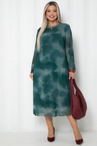 Приталенный силуэт с акцентом на талии достигается за счет призборенной спинки, обеспечивающей идеальную посадку по фигуре. Одношовный вточной рукав длиной 62 см завершается поперечной сборкой, создавая легкий и романтичный объем. Длина платья по спинке – 112 см.