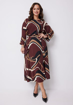 Платье из костюмно-плательной ткани прилегающего силуэта. Обработана потайная молния в среднем шве спинки. Внизу по спинке обработана шлица. Верх выполнен из мягкой сетки, спереди вырез (декольте), горловина спинки выполнена в виде капельки с навесной петлей.