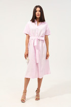 Платье выполнено из трикотажного полотна в рубчик. Платье приталенного силуэта. На спинке средний шов с разрезом. Горловина округлой формы. Плечевой шов заужен.