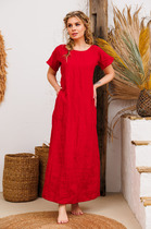 Женское вечернее платье выполнено из тонкой переливающейся ткани. По переду платья глубокий V-образный вырез и запах , так же по переду имеются нагрудные выточки. Рукав длинный втачной. По спинке платья имеются таллиевые выточки и средний шов. По горловине и на талии изделие декорировано пришивными камнями (ручная работа) Платье надевается поверх комбинации.