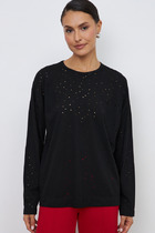 Вечернее женское платье выполнена из эластичной сетки с люрексной нитью, изделие длины - макси, отрезное по линии талии, с регулирующей эластичной тесьмой в таллиевом шве. По лифу в плечевые швы заложены глубокие складки, декольте прикрыто основной тканью. Горловина округлая, рукав - втачной, длинный, разрезной, по низу рукава манжета с петлей-пуговицей. По центру спинки разрез и декоративные складки от плеча. Юбка платья прямая с высоким разрезом от низа выше уровня колена.