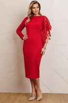 Платье женское стильное нарядное повседневное выполнено из хорошего красивого хлопка в сочетании с шитьем. Вырез горловины отложной воротник, застежка доверху на обметанные петли и пуговицы. Рукав реглан из отделочной ткани (шитье), по центру рукава обработан разрез. Платье отрезное по талии, подрез фигурный по полочке и спинке, придает модели элегантный приталенный вид. Волан по низу платья из отделоной ткани (шитье). Декором служат отделочные пуговицы.