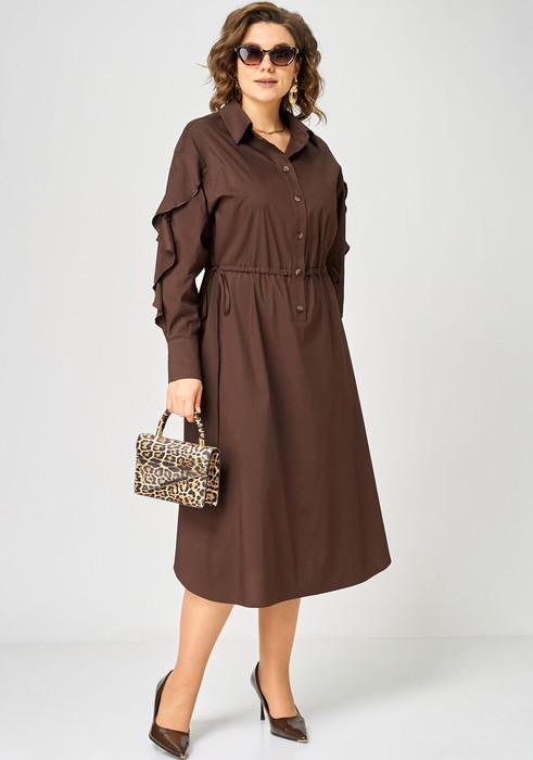 Платье женское полуприлегающего силуэта до пояса в стиле "платья-рубашки", выполнено из однотонного хлопка. Трендовый фасон, который сочетает в себе коморт повседневной вещи и элегантность праздника. Вырез горловины воротник на стойке рубашечного типа, застежка планка чуть ниже талии на обметаннве петли и пуговицы. Плечо спущенное, рукав втачной по центру разрезной со вставкой в виде волана на притачной манжете, что придает изделию легкость и изюминку. По полочке и спинке кулиса с руликом входящим к боковым швам. "Идеальная" талия за 1 секунду. Встроенная кулиска с регулировкой - это гениальное решение, которое подстраивается под вашу фигуру и Вы сами создаете свой восхитительный образ и регулируете свои обьемы. Низ платья фигурный закругленный к боковым швам, что создает удобство в носке и небанальность в изделии. В боковых швах обработаны разрезы. Декором платья служат отделочные пуговицы, кулиска и необычные воланы по рукавам.