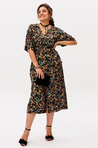 Нижняя часть платья - коническая. Модель дополнена съёмным поясом с пряжкой.