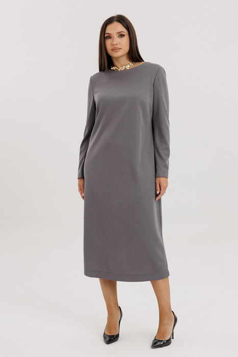 Это платье - настоящий мастхэв на долгий зимний сезон. Комфортное вискозное полотно, минималистический крой, эффектная спинка и длинный рукав. Оно легко вписывается в городской лук и уместно смотрится в деловом стиле. Свободный упрямленный силуэт, втачной покрой, круглая горловина. Полочка с нагрудной вытачкой. спинка с центральной застежкой на петли и пуговицы и плечевой вытачкой. Рукав двухшовный. Длина платья около 110 см.