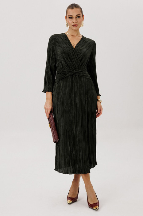 Темно-зеленый цвет-фаворит сезона. Женственный силуэт, подчеркивающий линию талии, и невероятная фактура гофрированного полотна делают эту модель не только изысканно-красивой, но и мега удобной.