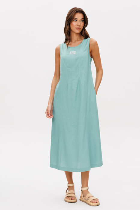 Платья, даже для тех, кто надевает их лишь по особым случаям, в теплое время года становятся такой же необходимостью, как уютный свитер зимой. Легкость, свобода движений и естественная женственность-все это делает их незаменимыми спутниками лета. Комфортное смешанное полотно лен с вискозой, полуприлегающий силуэт, круглая горловина, эффектная застежка-капля на спинке. Необычный крой 6-ю вертикальными рельефами в верхней части конструктивно задают структурность платью, выгодно подчеркивая силуэт. Длина изделия около 117 см.