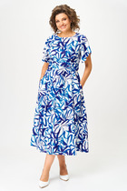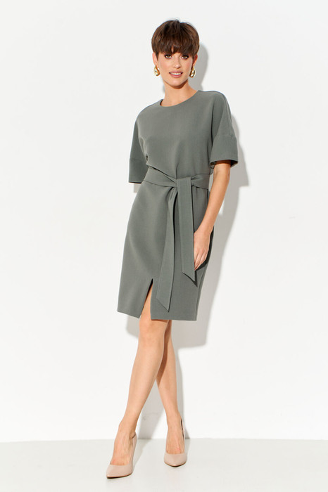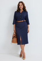 Классическое женское платье полуприлегающего силуэта выполнено из плательной ткани с содержанием вискозы. По переду небольшой декоративный разрез; вырез горловины круглой формы; рукава со спущенной линией плеча; по спинке застёжка на молнию. В комлекте съёмный пояс из основной ткани. Платье полностью соответствует заявленному размеру. Пожалуйста, пользуйтесь таблицей обмеров готового изделия.