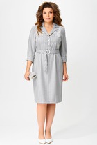 Женское платье полуприлегающего силуэта выполнено из плотного сатина с подрезами и складками, расположенными под линией груди. Рукава цельнокроеные; горловина имеет v -образную форму; в боковом шве - молния.
