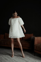 Платье женское полуприлегающего силуэта.Изготовлено из текстильного полотна костюмно-плательной группы. Платье отрезное по линии талии.В боковом шве обработана молния.