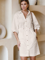 Платье женское, трикотажное полуприлегающего силуэта. v-образным вырезом по переду.Со средним швом заканчивающиеся разрезом.Рукава прямые собирающиеся с низу на манжет. Платье длиной ниже линии колена. На манжетах нашиты 4 декоративные пуговицы.