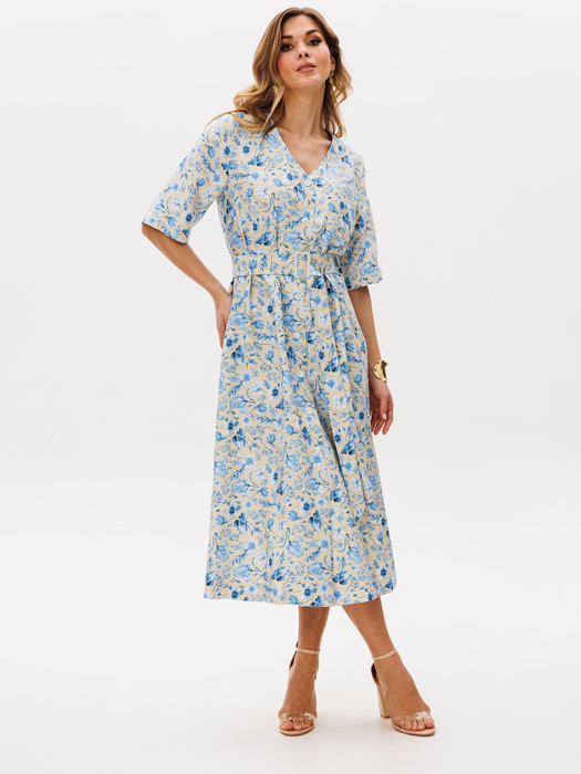 Совместные покупки Магнитогорск Женская одежда Платья — Платье Gizart 5299 бежевый голуб цветочки