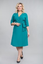 Платье, с застежкой на потайную молнию в среднем шве спинки, без воротника, с круглым вырезом горловины. Платье отрезное по линии талии. Лиф переда частично присборен по талиевому шву. По центру лифа переда настрочена деталь из кружева. Лиф спинки со средним швом, талиевыми вытачками. Нижняя часть переда платья со средним швом, втачными деталями из кружева. Нижняя часть спинки со средним швом, талиевыми вытачками. Рукав втачной, короткий, с отрезной манжетой. Окат и низ рукава присборен.