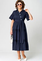 Платье с центральной застежкой на петли и пуговицы, втачным воротником- стойкой. Спинка со съемным швом. Рукав короткий, цельнокроенный с отложной манжетой. Платье со съемным поясом.