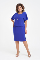Платье с центральной застежкой на петли и пуговицы, втачным воротником с отрезной стойкой. Платье отрезное по линии талии Полочки с драпировкой, переходящей в завязки по талии. Нижняя часть платья с талиевыми вытачками. Спинка со средним швом, талиевыми вытачками. В боковых швах расположены карманы. Разрезы в боковых швах. Рукав втачной, длинный.