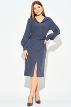 Платье полуприлегающего силуэта, без воротника, с круглым вырезом горловины, с застежкой на потайную молнию по среднему шву спинки. Перед с нагрудными вытачками. Спинка со средним швом. Рукав втачной, длинный, с отрезной манжетой, застегивающейся на одну петлю и пуговицу.