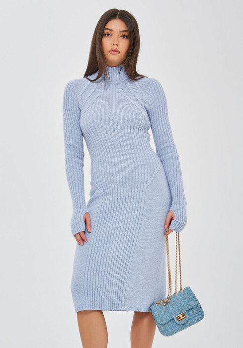 Вязаное теплое платье с длинными рукавами и отверстием под большой палец, длиной миди. Высокий свитерный воротник, комфортный в холодное время года. Хороший вариант для офиса, вечернего выхода, а так же повседневной носки. Платье трикотажное без застежки, мягкое, идеальный вариант на осень или зиму. Облегающее по силуэту, однотонное, придает элегантность  и подчеркивает стиль. В платье предусмотрен разрез со шлицей, для свободы движения. Платье гарантирует Вам тепло и уют в прохладные дни и станет вашим надежным спутником, идеально сочетая в себе комфорт и функциональность.
