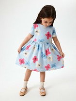 Платье для девочки А-образного силуэта, средней длины, с длинными втачными рукавами, с круглым вырезом горловины, отрезное по линии талии. Перед расшит пайетками. Юбка платья двухслойная, верхний слой юбки из сетки присборен.