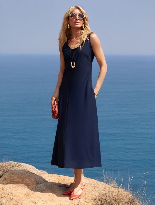 Состав: 70%Лиоцелл (Вис) 30%ПЭ Параметры модели на первом фото: Рост 170, бюст 89, талия 63, бедра 92Платье с V-вырезом выполнено из плотного лиоцелла. Лаконичная модель с открытыми плечами и слегка расклешённым низом. Ткань изделия отлично держит форму, плавно драпируется и не просвечивает. В теплое время года приятно охлаждает кожу. Добавление синтетических волокон в составе изделия, предотвращает сминаемостьи поддерживает формоустойчивость.