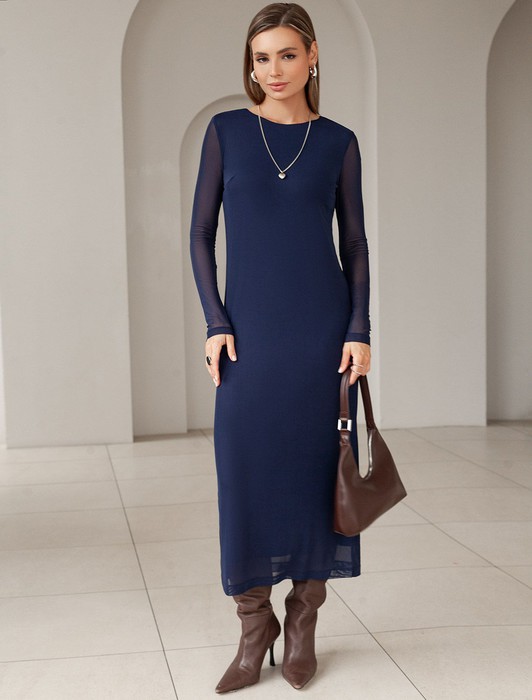 Состав: 95%ПЭ 5%ПУ; ПОДКЛАДКА- 95%Вис 5%ПУМодель выполнена из воздушной сетчатой ткани с вискозной подкладкой, которая подчеркивает фигуру. Прямой крой создает стройный силуэт. Богатый темно-синий цвет создает эффект глубины и роскоши. Прозрачные рукава добавляяют образу пикантности. Идеально подходит как для вечерних выходов, так и для повседневного образа.