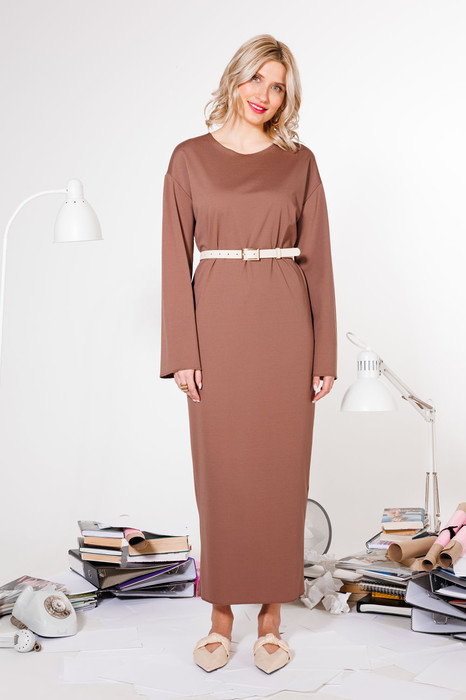 Трикотажное платье в пол с широкими рукавами. Прямой силуэт, высокий разрез сзади - это то, что сделает ваш силуэт элегантным и простым одновременно. Трикотажное полотно мягкое и пластичное. Можно сделать акцент на талии поясом. Все швы обработанны в открытую. Длина  - 130 см.