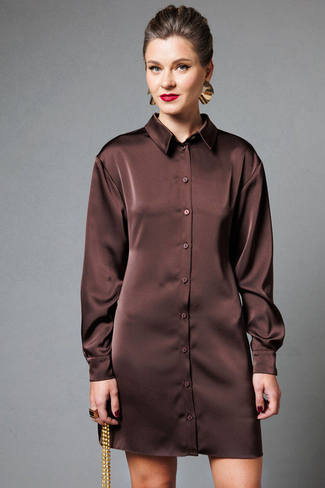 Платье полуприлегающего силуэта. В боковых расположены ленты, которые можно завязать на спинке, или по переду. платье выполнено из плотного струящегося атласа. Длина платья - 80 см.