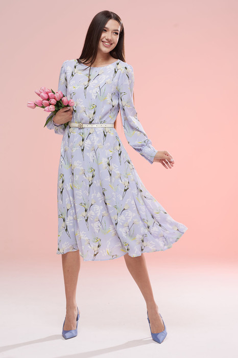 Романтичное платье из шифона невероятной красоты, на подкладке. В нем Вы однозначно будете сиять! По верхней части переда нагрудная и талевая вытачки. По верхней части спинки талевые вытачки. Отрезное по линии талии. Нижняя часть платья по крою «полусолнце». В среднем шве спинки  потайная застёжка-молния. Шикарная посадка по фигуре. Длина платья по спинке от горловины до низа 110см. Рукав втачной, одношовный, со сборкой по окату и низу, с притачной манжетой, высотой 8 см, на функциональную застёжку петли-пуговицы. Пуговицы могут отличаться от заявленного на фото. Длина рукава  65,5 см. Декор съёмный ремень подчёркивает изящество фигуры, может отличаться от заявленного на фото. Это стильное платье станет неотъемлемой частью Вашего гардероба. Цвет платья может отличаться на полутон от заявленного на фото.