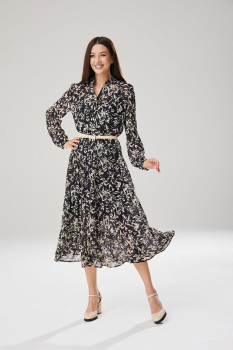 Невероятное стильное платье А-силуэта из шифона на подкладке-комбинации достойно самых высоких похвал! По переду платья – нагрудные вытачки, притачные планки с функциональной застёжкой на петли-пуговицы. Пуговицы могут отличаться от заявленных на фото. Горловина обработана воротником-стойкой. По переду и спинке три притачных волана со сборкой. Шикарная посадка по фигуре. Длина платья по спинке от горловины до низа – 120,5см. Рукав – втачной, одношовный, со сборкой по низу, с притачной манжетой, высотой 4см, на функциональную застёжку петли-пуговицы. Пуговицы могут отличаться от заявленных на фото. Длина рукава с манжетой от плечевого шва – 62,5 см. Декор – съёмный ремень подчёркивает изящество фигуры, может отличаться от заявленного на фото. Подкладка-комбинация из трикотажной подкладки. По переду – нагрудные вытачки на бретельках. Горловина и пройма обработаны обтачкой. Это стильное платье станет неотъемлемой частью Вашего гардероба. Цвет платья может отличаться на полутон от заявленного на фото.