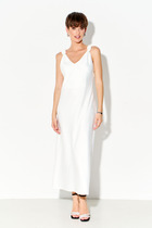 Платье свободного кроя, выполнено из легкой струящейся шифоновой ткани. Рукав втачной длинный, верхняя часть рукава собрана на сборку, по низу  рукава резинка. Воротник стойка переходящая по спинке на завязку, по горловине переда от шва притачивания воротника сборка. К низу лифа платья пришиты воланы на сборку.  В комплектацию платья входит платье – комбинация, выполненное из трикотажной подкладки.