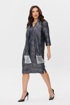 Платье полуприлегающего силуэта, отрезное по талии. Рукав втачной, по низу рукава манжета с застежкой на петли и пуговицы. Воротник рубашечного кроя, по переду