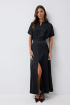 Элегантное платье свободного силуэта с ассиметричными рукавами. Выполнено из струящейся , приятной к телу плательной ткани. Застежка по спинке на потайную молнию. Длина платья от плечевого шва до нижней точки 110см. Длина левого рукава 22см, правогог 18см.