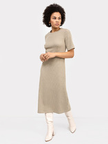 Стильное платье свободного кроя со слегка завышенной фигурной линией талии по переду. Рукав втачной, длиной ниже локтя. По спинке застежка на потайную молнию. Платье дополнено функциональными боковыми карманами.  Длина платья от плечевого шва 126 см. Длина рукава 38см.