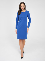 Стильное трикотажное платье свободного прямого кроя с боковыми разрезами. Выполнено из мягкого трикотажного полотна с эффектом стежки.  Рукав втачной, слегка спущен. Платье дополнено удобными карманами в боковых швах. По  среднему шву спинки расположен разрез. Длина платья от плечевого шва 106см.  Длина рукава 60см.