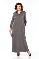 Платье полуприлегающего силуэта , слегка зауженное к низу. Спинка со средним швом и шлицей. Горловина округлой формы , по спинке с застёжкой на пуговицу и навесную петлю.По переду средний шов , нагрудные вытачки, на уровне талии декоративные складки, переходящие в пояс.