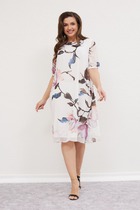 Платье в стиле casual предназначено для повседневной носки, прекрасно сочетается с любой по стилю обувью. Платье выполнено из вискозной ткани, свободного кроя, ниже колена, рукав укорочен. В качестве декора по переду изделия — вставлена планка из контрастной ткани, на планке нанесены небольшие стразы. По бокам изделия — разрезы, которые также обработаны контрастной тканью, в цвет декоративной планки. Также в изделии имеются боковые карманы.
