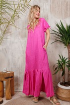 Элегантное и эффектное платье выполнено из легкого плательного материала. Изделие будет отличным вариантом как для офиса, так и для корпоративов или торжеств. Платье свободного трапециевидного силуэта, длиной макси. Перед цельный, спинка с центральным швом. По круглой горловине притачная стойка с завязками из окантовки и капелька по переду, что придает образу особую элегантность. Рукав втачной длинный со сборкой и притачной манжетой по низу; манжета с завязкой из окантовки. В боковых швах имеются функциональные карманы. По переду платье украшает контрастная вышивка. Длинный фасон дает возможность создания стильного образа и обеспечит легкость движений и комфорт. Также с этим платьем можно создать более утонченный праздничный образ, добавив изящную обувь. Длина изделия по спинке 123 см, длина рукава от плечевого шва 67см. Изделие подойдет на рост 170 см.