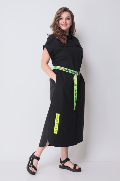 Платье рубашечного типа, свободного кроя - выполнено из приятной на ощупь хлопковой ткани. Универсальность кроя и натуральная легкая ткань сделают его любимым изделием Вашего гардероба в летний сезон. По переду сверху застегивается на пуговицы, снизу сбоку разрез, по спинке длиннее. Рукав короткий цельнокроеный приспущенный на отложенной манжете. Благодаря встречной складке на спинке имеет небольшое клешение. Украшением платья служит декоративный принт. По желанию фиксируется поясом из контрастной ткани, который идет в комплекте. Длина изделия по спинке от горловины 130 (+/-1) см. Изделие подойдет на рост 170 см.