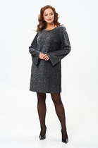 Платье трапециевидного силуэта с кокеткой из сетки по переду. Перед платья  и рукава выполнены из кружевной ткани. Спинка платья со встречной складкой выполнена из легкой плательной ткани. Шов по центру спинки сверху украшен пришивными стразами. Рукав втачной, длиной до локтя. Платье на подкладке из натуральной ткани.