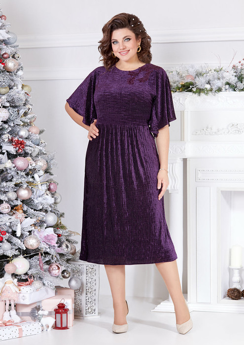 Эффектное, нарядное платье с необычным кроем, выполнено из плиссированного велюра с блеском. Лиф платья с цельнокроеным рукавом, горловина округлой формы, на обтачке. По линии талии отрезное, юбка платья слегка расклешенного силуэта, на полочке выполнена аппликация из кружева. Спинка идентична полочке, со средним швом, в среднем шве потайная молния, все платье на трикотажной подкладке. Шикарное платье в трендовом цвете украсить ваш образ и сделает вас неотразимой!