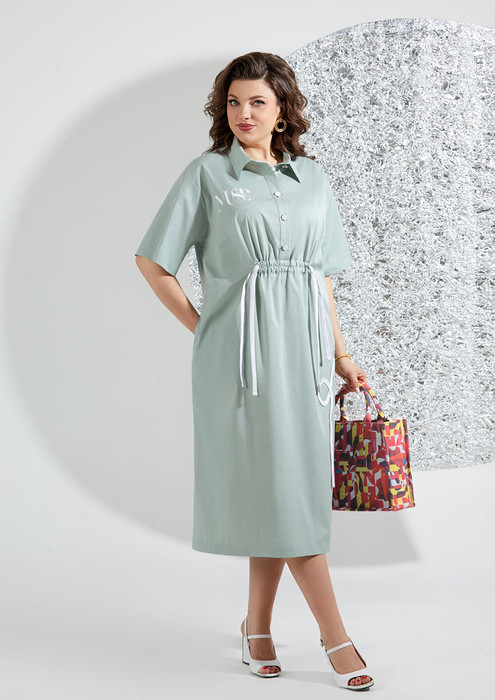 Летнее платье свободного покроя, выполнено из хлопковой ткани. По полочке платья выполнена застежка на планку с пуговицами, по низу застежки обработана кулиса, которая может затягиваться по мере вашего желания, тем самым делая силуэт более приталенным или более свободным, а контрастные шнурки отлично смотрятся как декор. Горловина платья обработана втачным воротником, на полочке также выполнена аппликация из шнура, на лифе термо-печать. Спинка выполнена из основной ткани, со средним швом, рукав втачной, укороченный, в боковых швах карманы. Это платье прекрасный выбор для жаркого лета, оно не только комфортное и практичное, но и стильное, а эффектная и современная отделка выделит и дополнит ваш образ!