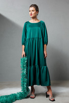 Платье из трикотажного полотна, полуприлегающего силуэта. Воротник стойка. Рукав - реглан с вытачкой по плечу. По переду боковой рельеф, заканчивающийся разрезом.