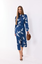 Платье женское свободного силуэта, отрезное по линии талии, расклешённое к низу, выполнено из ткани шифон. По линии талии сборка на резинку «венгерку». Горловина v-образная с небольших рюшей по переду до линии талии на завязках. Рукава одно шовные втачные, по низу сборка на резинку «венгерку». Платье на тонкой трикотажной подкладке.
