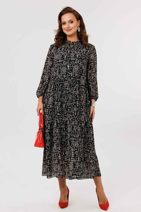 Стильное женское платье свободного силуэта, выполнено из плательной шифоновой ткани (не тянется) с дизайном «Геометрия», на подкладке (тянется).