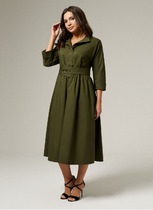 Изящное платье - рубашка прямого кроя из вискозного полотна с акцентным принтом. Горловина обработана рубашечным воротником с отрезной стойкой. Модель со слегка приспущенной линией плеча и длинным рукавом с манжетами. Длину рукава можно регулировать с помощью пат. Застёжка центральная на петли и пуговицы. По боковым швам расположены карманы. По низу изделия разрезы. В комплект входит пояс из основной ткани.