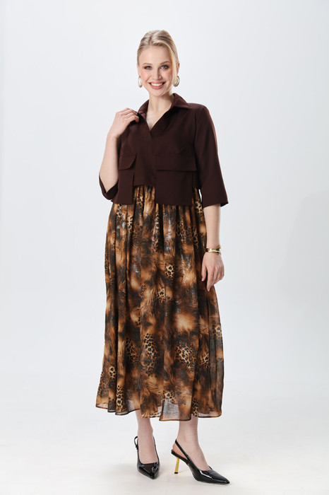 Платье NIKVA н514-5 шоколад и кофейный леопард