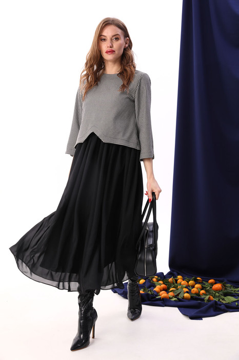 Совместные покупки Магнитогорск Женская одежда Платья — Платье NIKVA н740-10 чёрный+чёрно-белая гус лапка