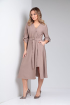 Vilatte Платье из вискозы твил D22.224 бежевый-коричневый