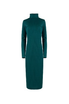 Платье прямого свободного силуэта длиной макси. Рукав летучая мышь с притачным манжетом. Воротник- объемный хомут. Перед состоит из пяти частей : правой верхней части переда, левой верхней части переда, центральной части переда, нижней части переда и отлетной фигурной  детали нижней части переда. На нижней части переда, по левой стороне накладной карман и карманы в боковых швах. Спинка состоит из трех частей: левой правой части спинки, правой верхней части спинки, нижних частей спинки с заходом одна на одну по центру низа. В комплект к платью ремень не идёт.